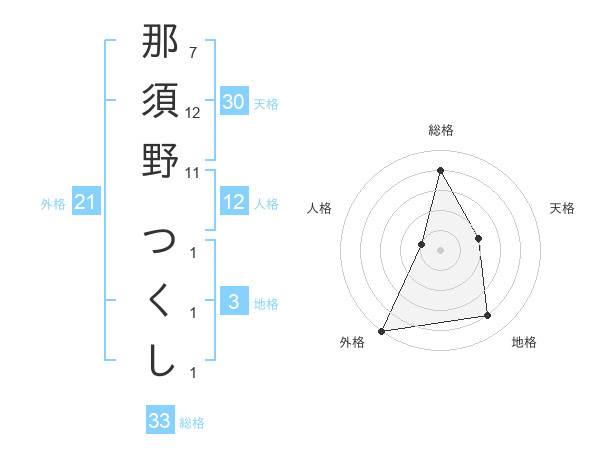 那須野 つくしさんの総格は33画の4点!