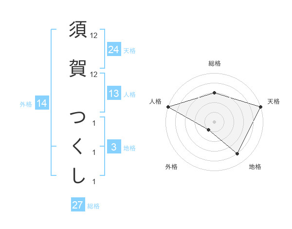 須賀 つくしさんを姓名の画数から五運を鑑定
