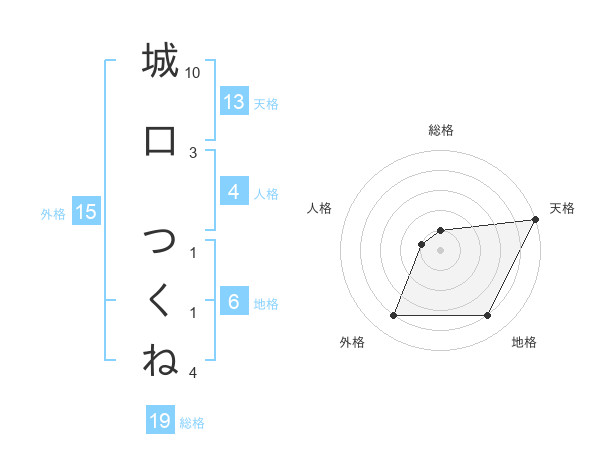 城口 つくねさんの天格は13画の5点!