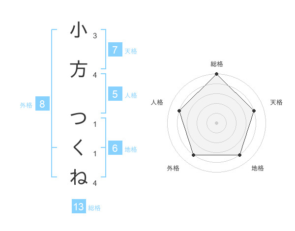 小方 つくねさんの総格は13画の5点!