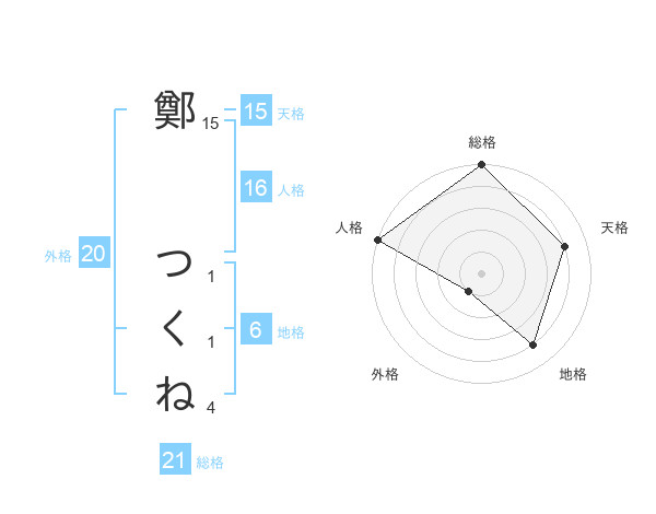 鄭 つくねさんを姓名の画数から五運を鑑定