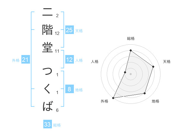 二階堂 つくばさんを姓名の画数から五運を鑑定