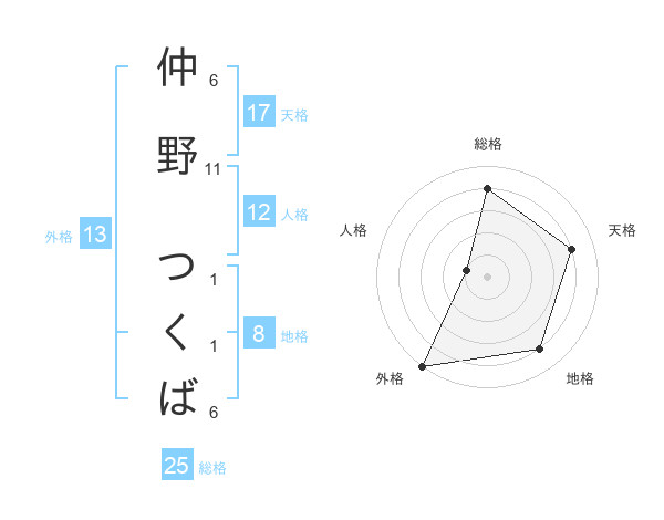 仲野 つくばさんを姓名の画数から五運を鑑定