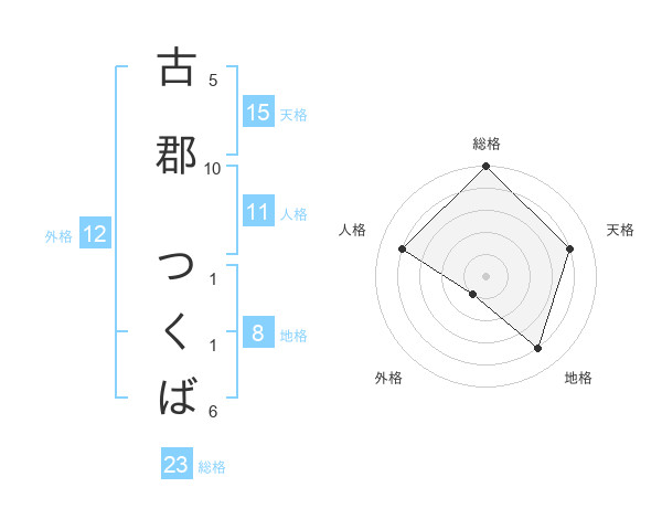 古郡 つくばさんを姓名の画数から五運を鑑定
