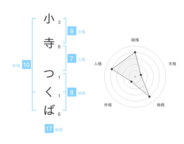 小寺 つくばさんの総格は17画の4点!