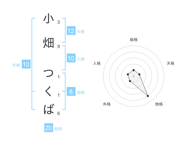 小畑 つくばさんを姓名の画数から五運を鑑定