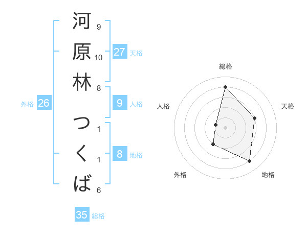 河原林 つくばさんの総格は35画の4点!