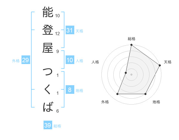 能登屋 つくばさんを姓名の画数から五運を鑑定