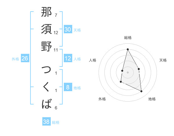 那須野 つくばさんを姓名の画数から五運を鑑定