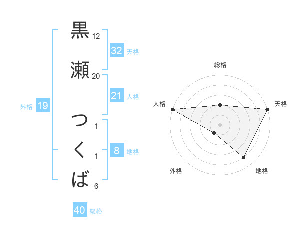 黒瀬 つくばさんを姓名の画数から五運を鑑定