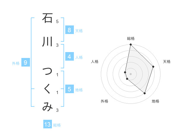 占い結果は姓名判断である以上、良い場合も悪い場合もありますが、決してお名前を誹謗中傷するものでなく、画数の自動計算によって得られたものです。また、本サイトの検索によって得られた鑑定結果で、第三者を誹謗中傷したり名誉を棄損するような行為を禁じます。