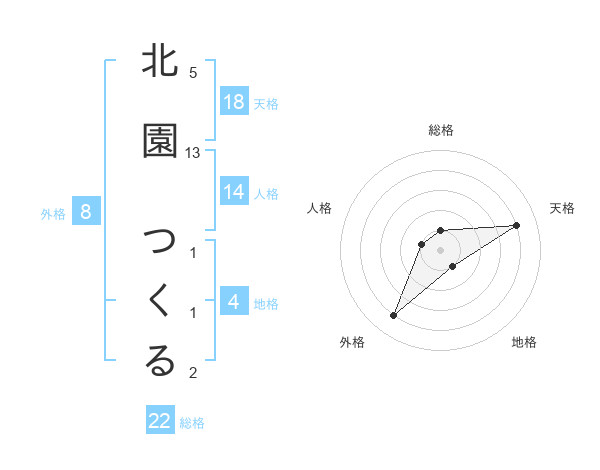 北園 つくるさんの総格は22画の1点