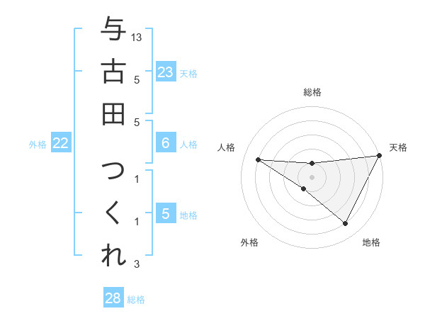 与古田 つくれさんを姓名の画数から五運を鑑定