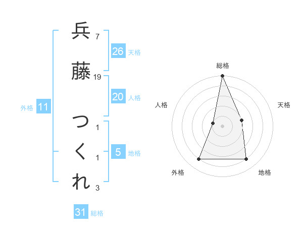 兵藤 つくれさんを姓名の画数から五運を鑑定