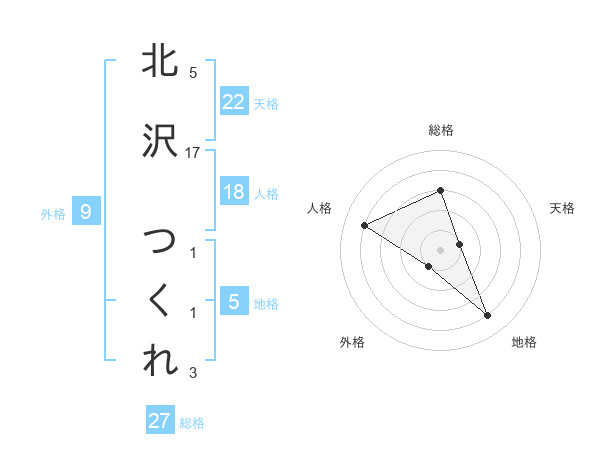 北沢 つくれさんの総格は27画の3点!