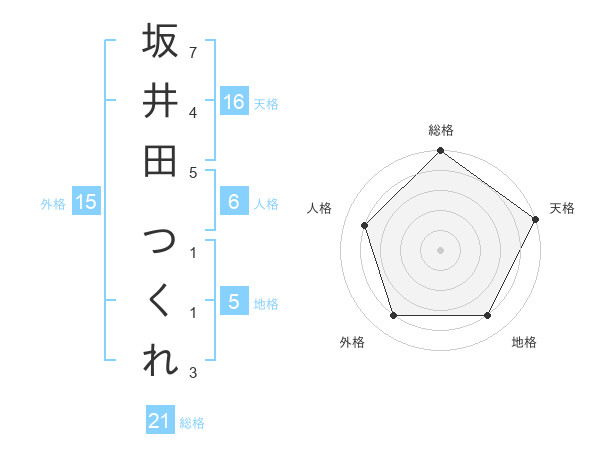 坂井田 つくれさんを姓名の画数から五運を鑑定