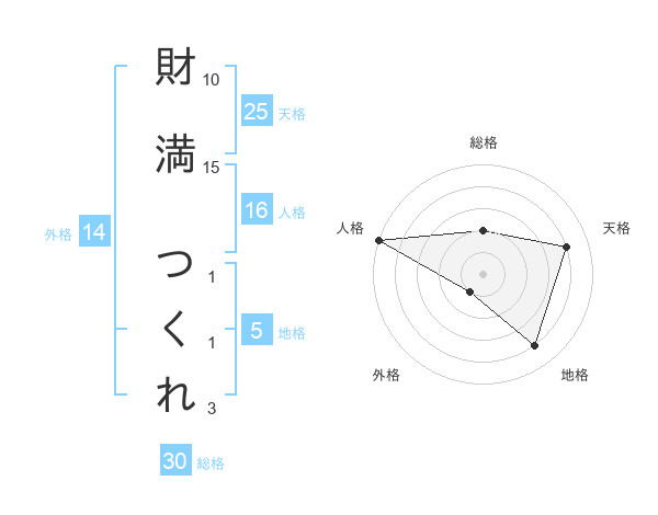 財満 つくれさんの総格は30画の2点!
