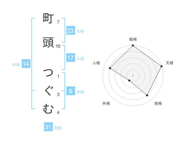 町頭 つぐむさんを姓名の画数から五運を鑑定