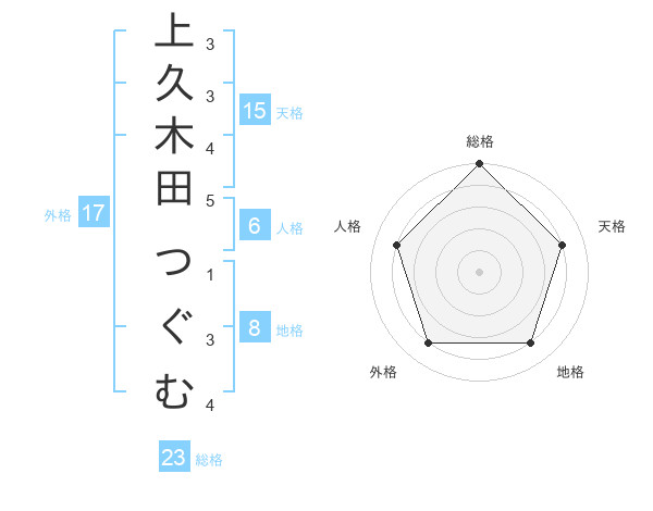 上久木田 つぐむさんを姓名の画数から五運を鑑定