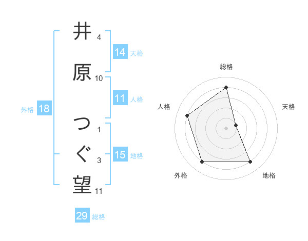 井原 つぐ望さんを姓名の画数から五運を鑑定