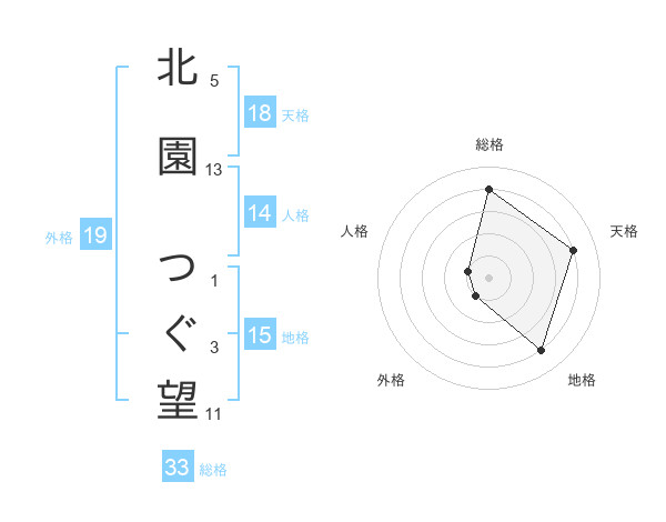 北園 つぐ望さんを姓名の画数から五運を鑑定
