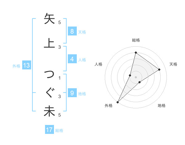 矢上 つぐ未さんの総格は17画の4点