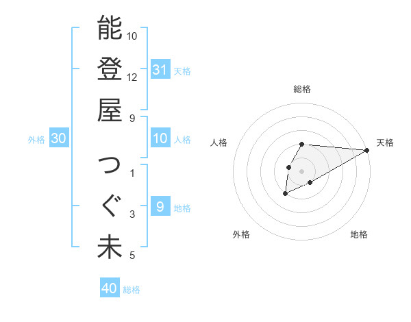 能登屋 つぐ未さんを姓名の画数から五運を鑑定