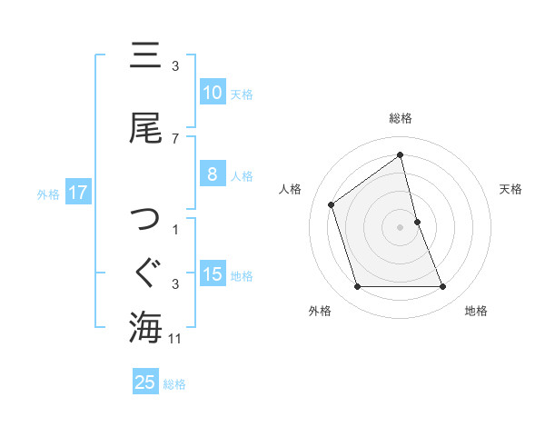 三尾 つぐ海さんを姓名の画数から五運を鑑定
