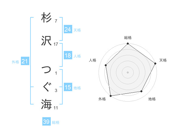 杉沢 つぐ海さんを姓名の画数から五運を鑑定