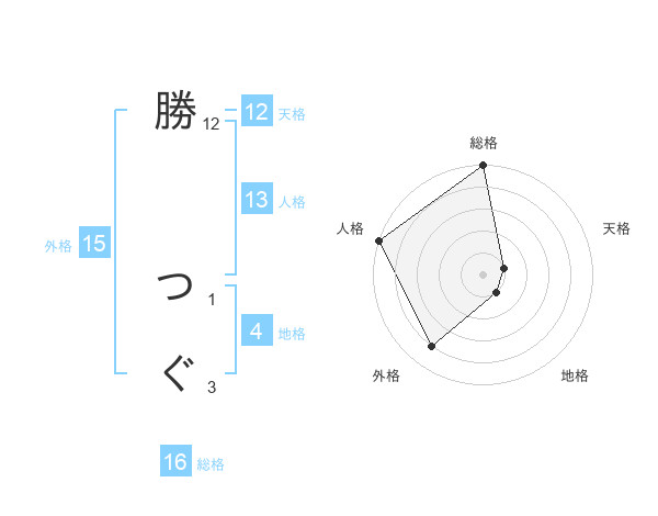勝 つぐさんの外格は15画の4点!