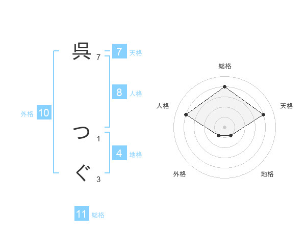 呉 つぐさんの総格は11画の4点!