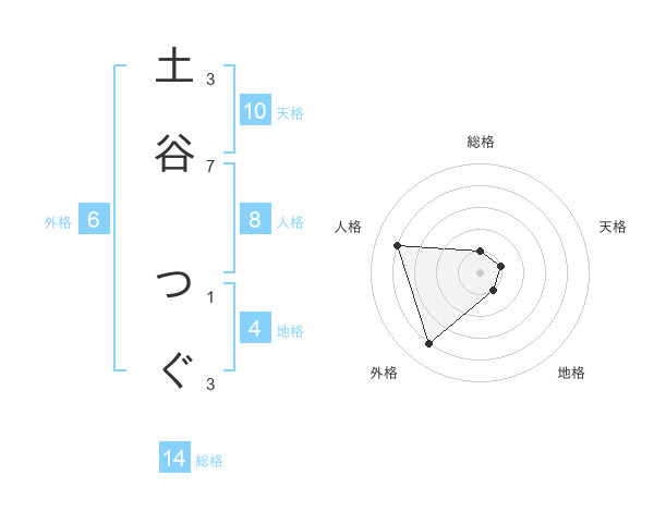 土谷 つぐさんの天格は10画の1点!