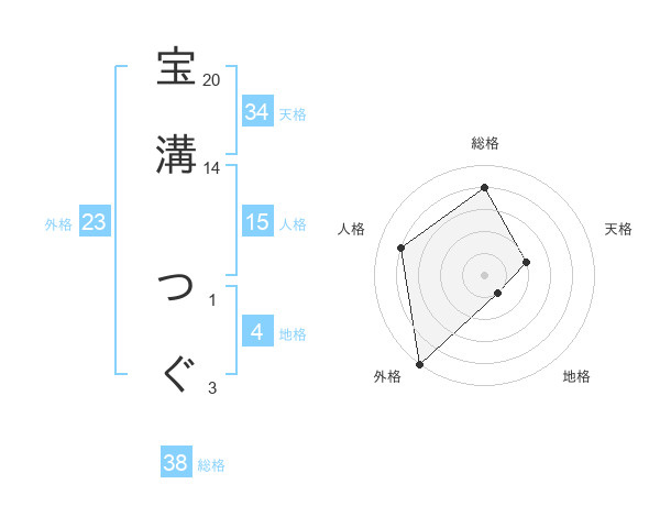 宝溝 つぐさんの総格は38画の4点!