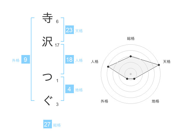 寺沢 つぐさんの総格は27画の3点!