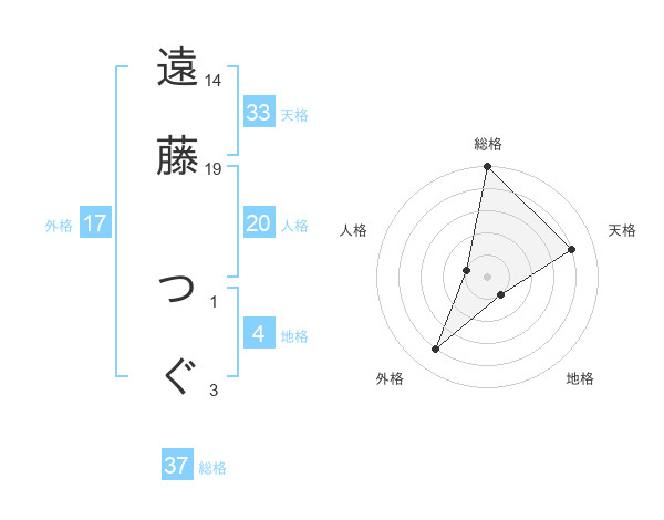 遠藤 つぐさんを姓名の画数から五運を鑑定