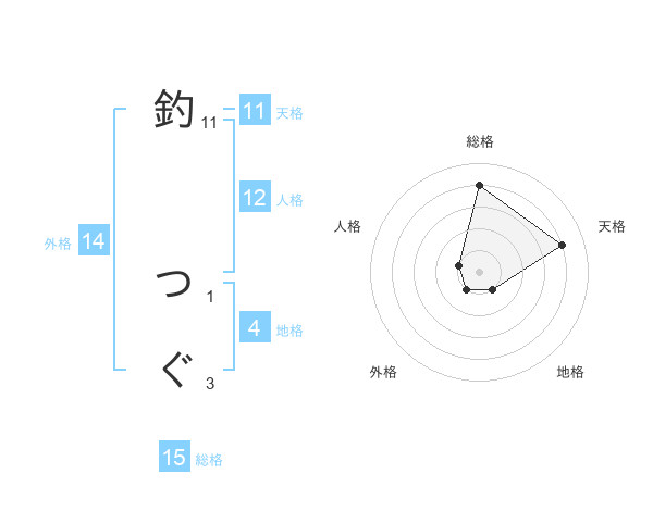 釣 つぐさんの総格は15画の4点!