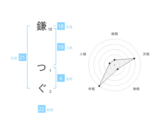 鎌 つぐさんの天格は18画の4点!