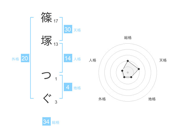 篠塚 つぐさんの総格は34画の2点!