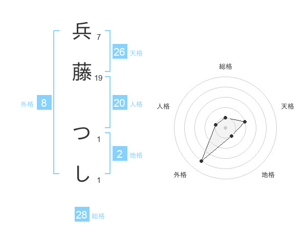 兵藤 つしさんを姓名の画数から五運を鑑定