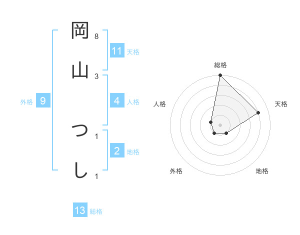 岡山 つしさんの総格は13画の5点!