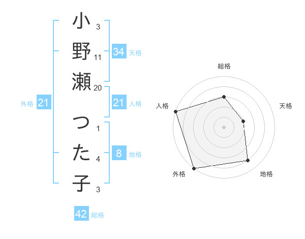 小野瀬 つた子さんを姓名の画数から五運を鑑定