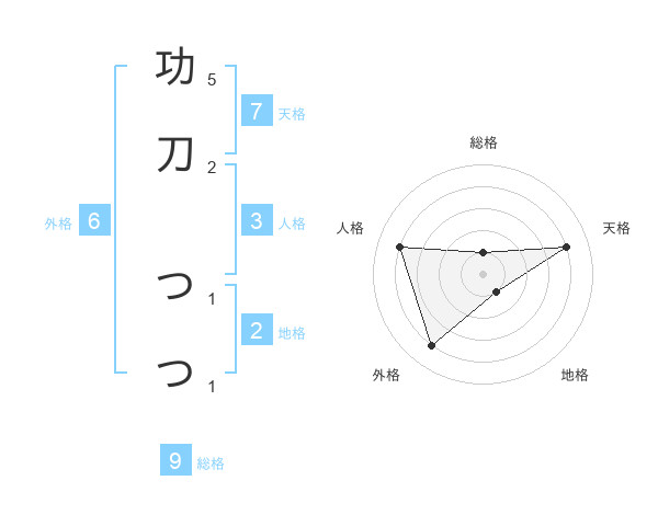 功刀 つつさんの総格は9画の1点!