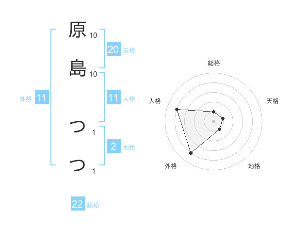 原島 つつさんの総格は22画の1点!
