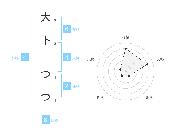 大下 つつさんの天格は6画の4点!