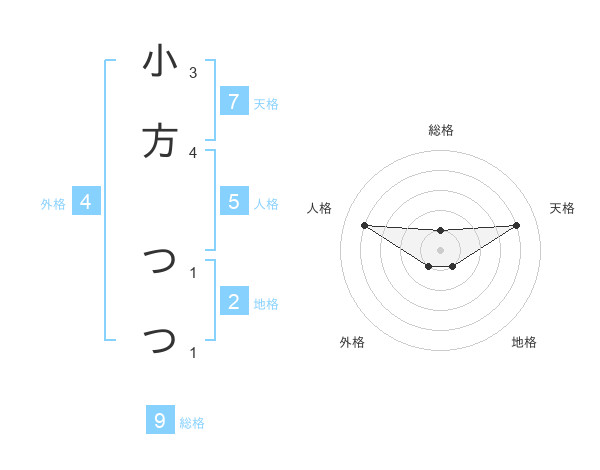 小方 つつさんの総格は9画の1点!