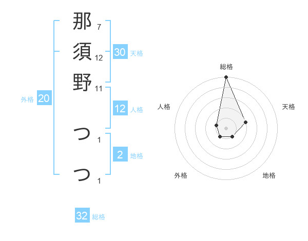那須野 つつさんの天格は30画の2点!