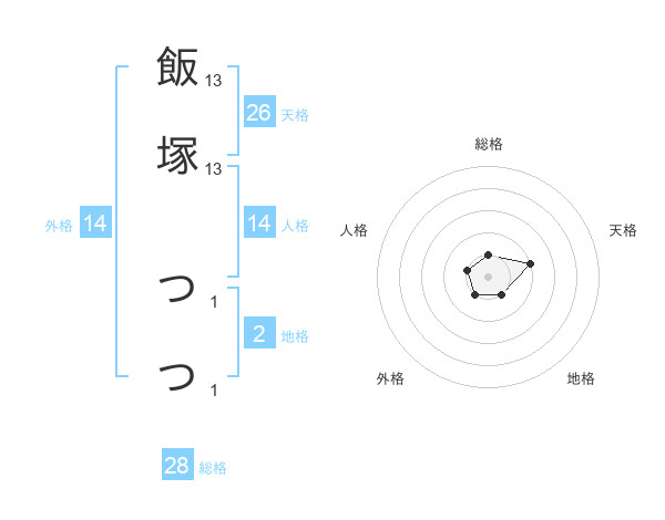 飯塚 つつさんの総格は28画の1点!