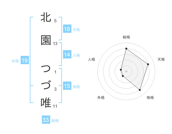 北園 つづ唯さんを姓名の画数から五運を鑑定