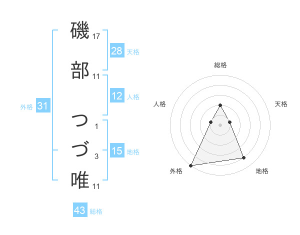 磯部 つづ唯さんを姓名の画数から五運を鑑定