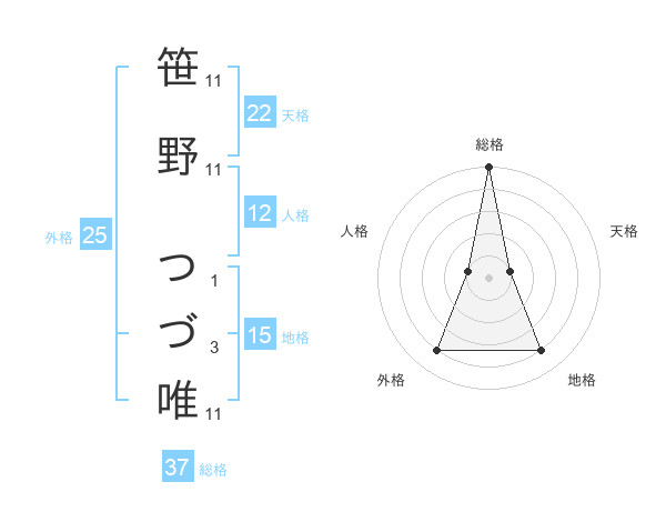 笹野 つづ唯さんの総格は37画の5点!